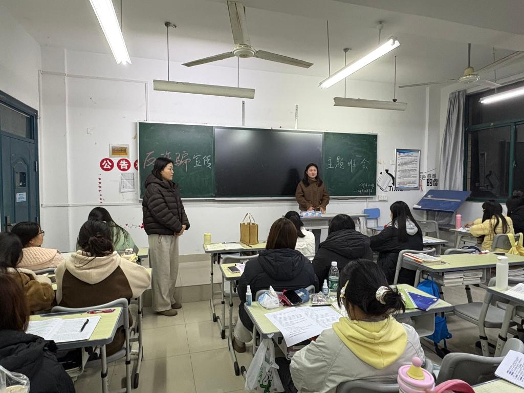 周日晚自习时间,各年级辅导员严格落实“一会一例”制度,深入班级开展专题教育。一方面,逐一核查学生手机中“国家反诈中心”APP的安装与使用情况,确保关键防护工具全覆盖、真启用;另一方面,精心选取近期校内外发生的典型电信网络诈骗案例,进行深入剖析讲解。通过真实情境再现,引导学生深刻认识诈骗的隐蔽性与危害性,牢固树立“要钱不给,给钱不要”的核心防范思想,筑牢心理防线。