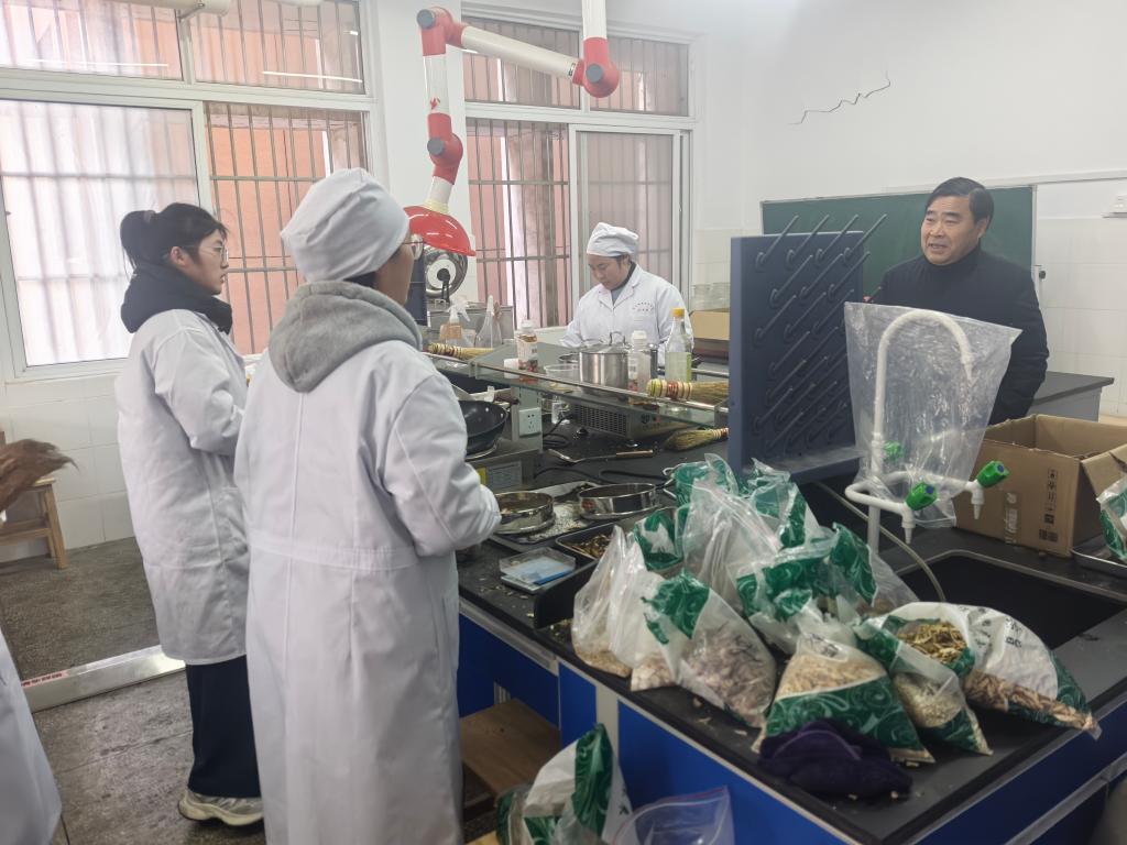 在中药传统技能赛项备赛现场,副校长胡道成实地查看学生训练情况,详细了解药品调剂、药材炮制等关键环节,对师生表现出的专业素养和严谨态度给予充分肯定。他强调,要充分发挥技能大赛的示范引领作用,将竞赛标准融入日常教学,深化教育教学改革,推动人才培养质量不断攀升。