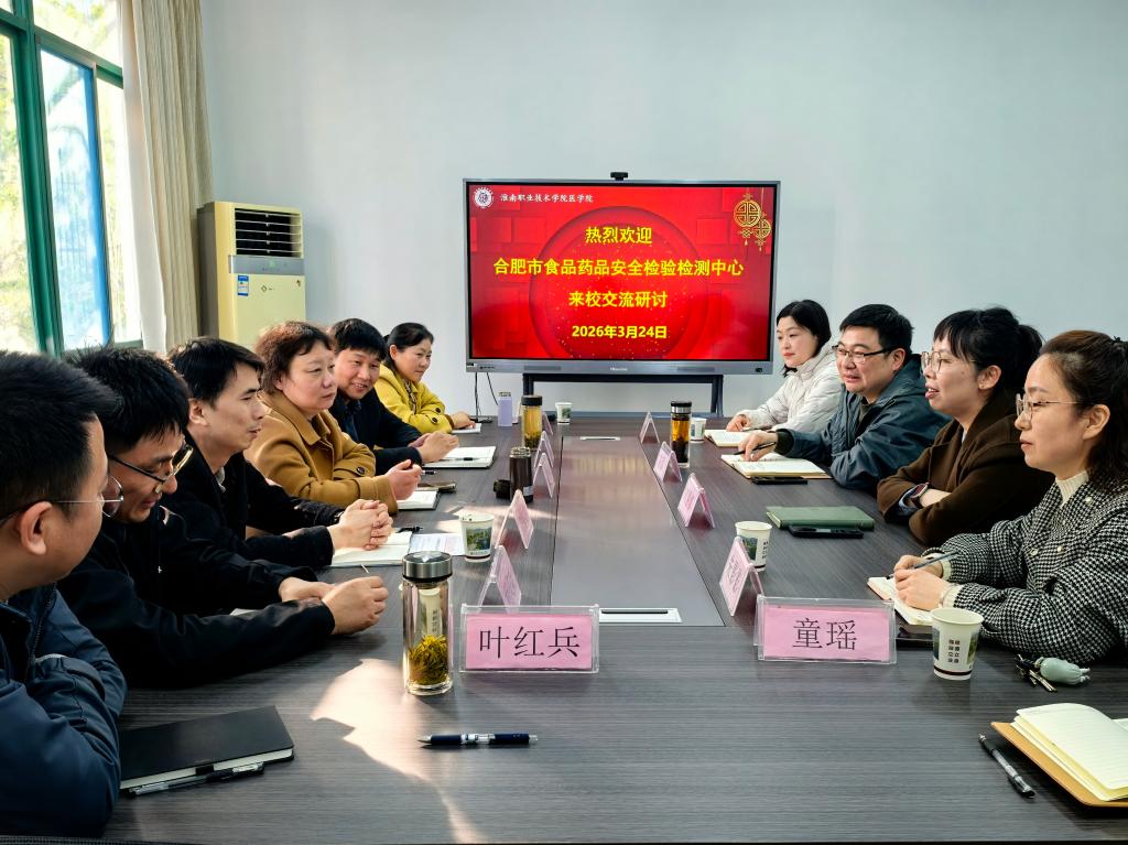 为深化校所协同,助力人才培养质量提升与行业技术创新,3月24日下午,合肥市食品药品安全检验检测中心副主任陶俊钰、王玮一行来我校开展专业交流研讨活动。