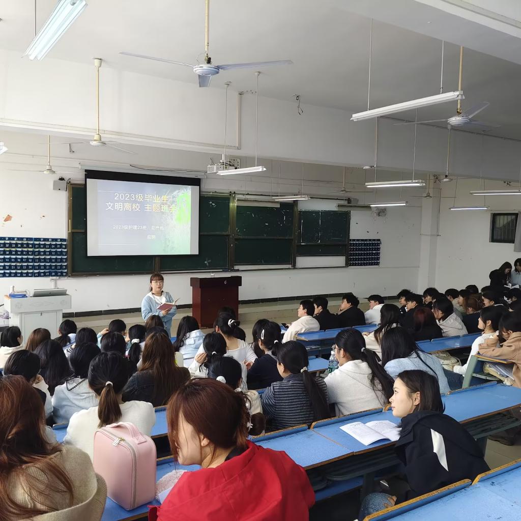 在毕业生离校前,医学院各班级集中召开了文明离校主题班会。班会重点强调了文明离校的意义与具体要求,各班辅导员和班主任向毕业生详细解读了毕业离校的各项流程,认真布置了毕业相关材料的收集与提交工作,并对毕业生档案、就业信息登记等重要事项进行了全面指导。同时,班会还号召广大毕业生在离校期间自觉遵守校规校纪,爱护校园环境,以文明、有序的方式告别母校,展现医学院学子良好的精神风貌。